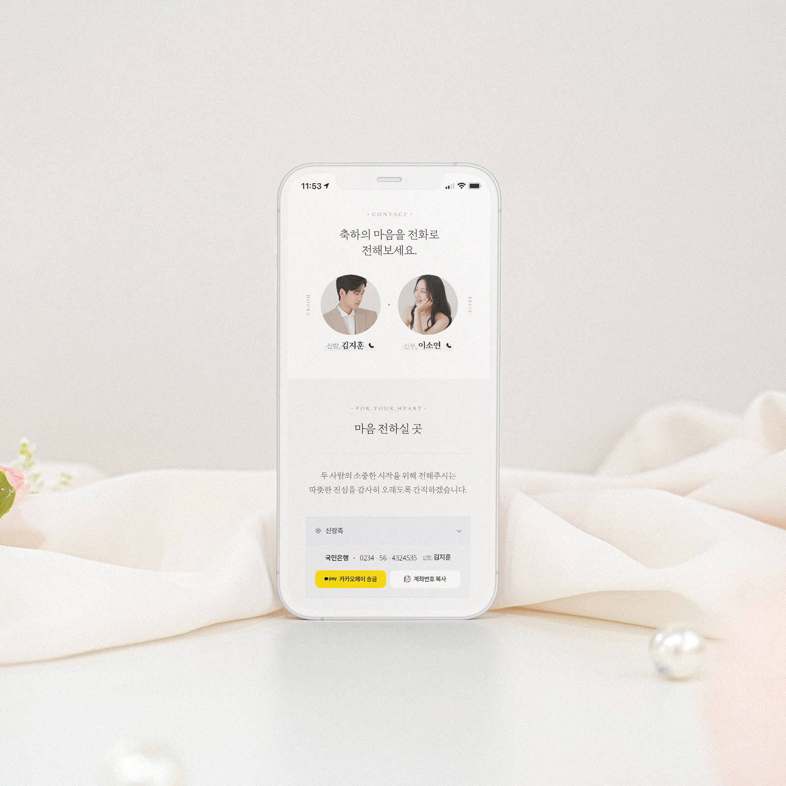 그래서인지 받으시는분들이 모바일청첩장이 왜이렇게 예쁘냐며, 정성이 가득 담긴 느낌이라고 종이청첩장보다도 반응이 더 좋았답니다!!